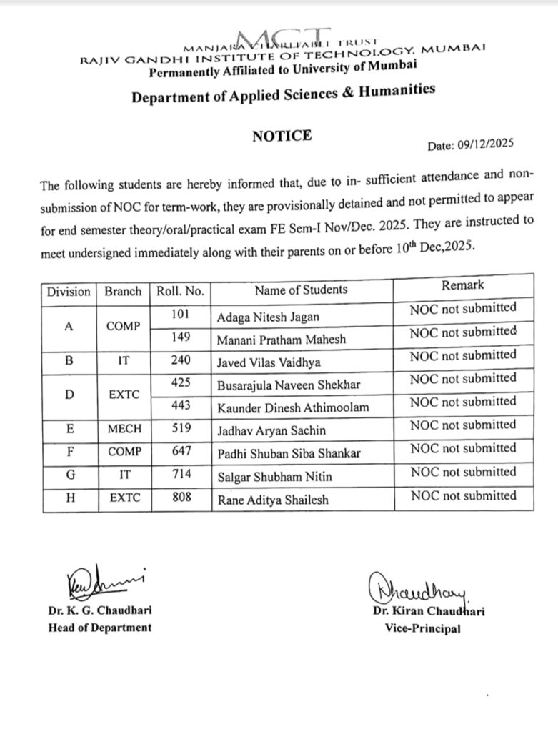 FE SEM l Provisional Detention List 2025-26