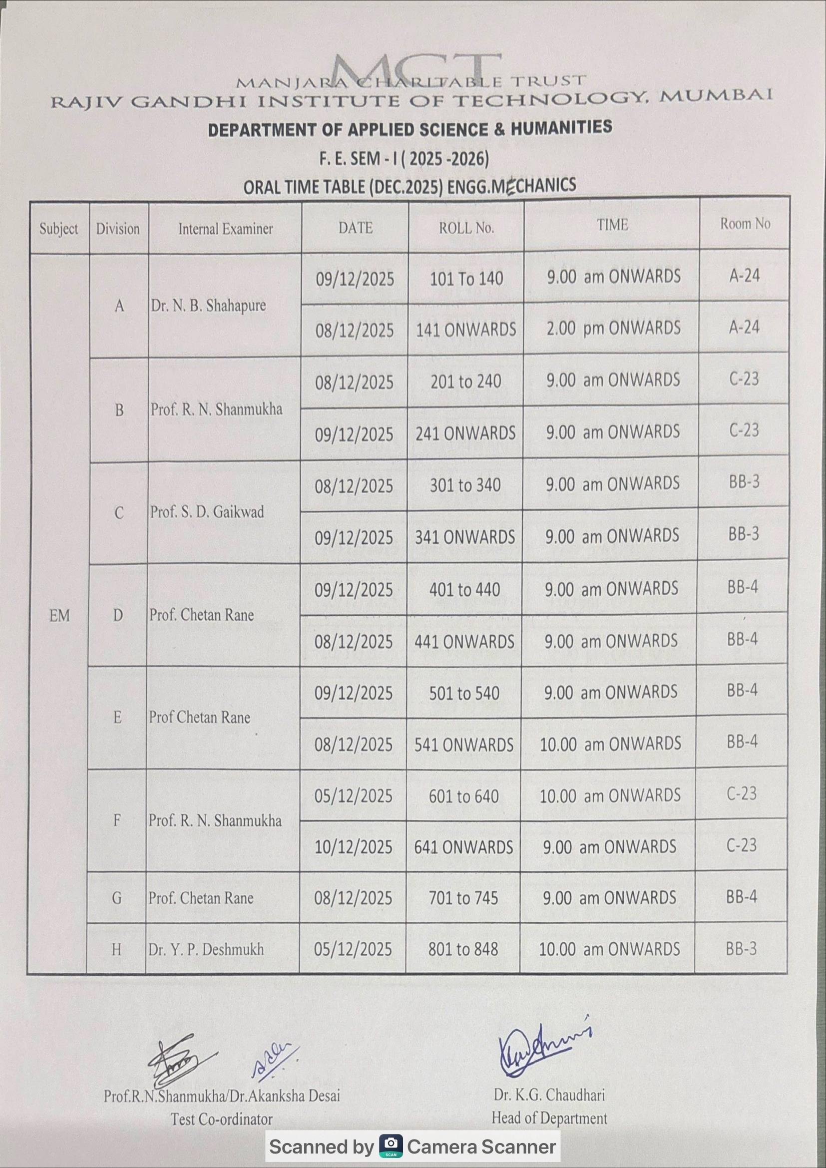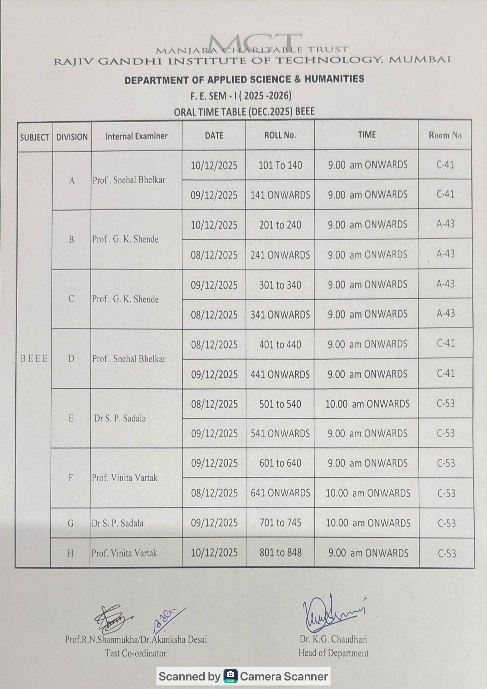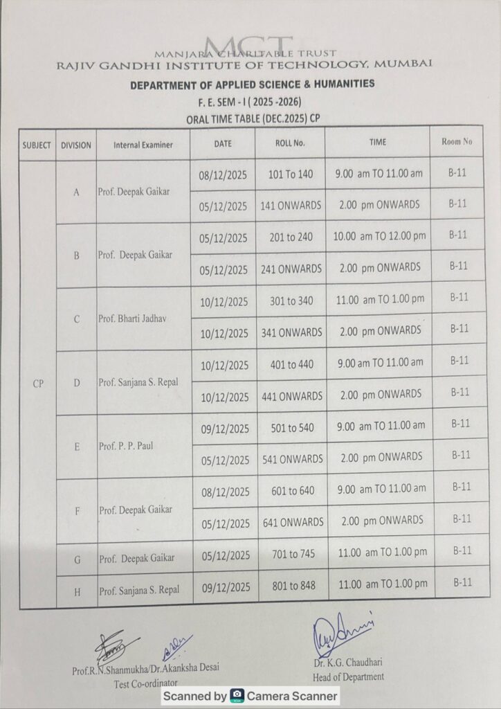 Oral time table sem-I ( Dec – 2025-26)